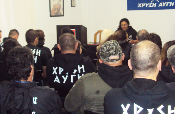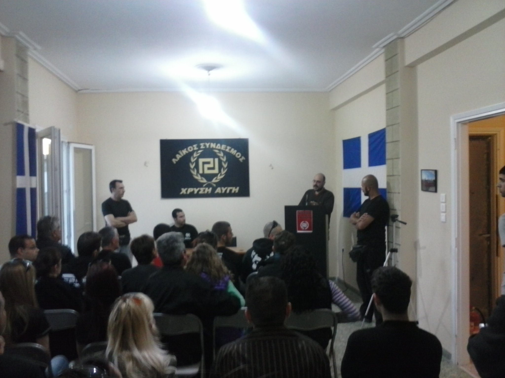 Ο Συναγωνιστής και μέλος της Κεντρικής Επιτροπής της ΧΡΥΣΗΣ ΑΥΓΗΣ Κώστας Αλεξανδράκης πραγματοποίησε ομιλία στα γραφεία της Τοπικής Οργάνωσης Δυτικής Αττικής. Ξεκίνησε την ομιλία του αναφερόμενος στον πόλεμο τον οποίο δέχεται η ΧΡΥΣΗ ΑΥΓΗ λόγο των αντιμνημονιακών και αντισυστημικών τοποθετήσεών της καθώς και της επιμονή της για τη παραδειγματική τιμωρία των ενόχων που έσυραν την Ελλάδα στο έλεος των τοκογλύφων και των ξένων συμφερόντων. Εκτενής αναφορά έγινε στις γερμανικές αποζημιώσεις, τη λασπολογία την οποία δέχεται το Κίνημα από τις εφημερίδες των τοκογλύφων.