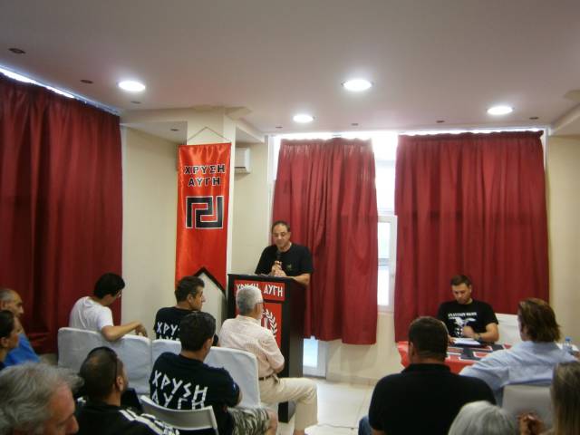 Ο συναγωνιστής ξεκίνησε την ομιλία του παρουσιάζοντας ένα ψυχογράφημα του αστού και της βασικής του ιδεολογίας, δηλαδή την απόκτηση όσο το δυνατόν περισσότερων χρημάτων, αδιαφορώντας για το αν ο τρόπος με τον οποίο θα επιτευχθεί αυτός ο σκοπός είναι ηθικός ή όχι. Ο αστός είναι ένας υλιστής που έχει τον δικό του τρόπο να αντιλαμβάνεται την έννοια της αξίας, τοποθετεί το προσωπικό του συμφέρον πάνω από το Έθνος και «πουλάει» ευχαρίστως την πατρίδα του στον κάθε ισχυρό που νομίζει ότι θα τον εξυπηρετήσει στον σκοπό του. Στην συνέχεια, ο συναγωνιστής Βογιατζής αναφέρθηκε στον Εθνικιστή, του οποίου η στόχευση είναι συλλογική και όχι ατομικιστική, δεν έχει ταξικό ή ατομικό προσανατολισμό και θέτει το πρόσωπο στην υπηρεσία του εθνικού συνόλου. Ο Εθνικιστής πιστεύει ότι έχει χρέος να παραδώσει στους απογόνους τους την πατρίδα του μεγαλύτερη, ισχυρότερη και καλύτερη. Προς το τέλος της ομιλίας του, ο Συναγωνιστής έκανε ιδιαίτερη αναφορά στον Χρυσαυγίτη, ο οποίος είναι κάτι παραπάνω από Εθνικιστής. Είναι αυτός ο αγωνιστής, που πέρα από τον διακαή πόθο για την απελευθέρωση της πατρίδας, έχει τάξει την ζωή του και ολόκληρη την ενεργητικότητά του στην υπηρεσία του Αρχηγού, του Κινήματος και των ιδεών που πρεσβεύουν. Μετά το πέρας της άκρως ενδιαφέρουσας ομιλίας του συναγωνιστή, ακολούθησε συζήτηση με τα μέλη του Πυρήνα Θάσου για τα τοπικά προβλήματα. Αναφορά έγινε σε θέματα και προβλήματα της καθημερινότητας του νησιού ενώ προέκυψαν και προτάσεις επίλυσης κάποιων από αυτά. Τέλος, όλοι οι παρευρισκόμενοι, φίλοι και υποστηρικτές του Κινήματος, σε στάση προσοχής έψαλαν τον Εθνικό Ύμνο και τον Ύμνο του Κινήματος.