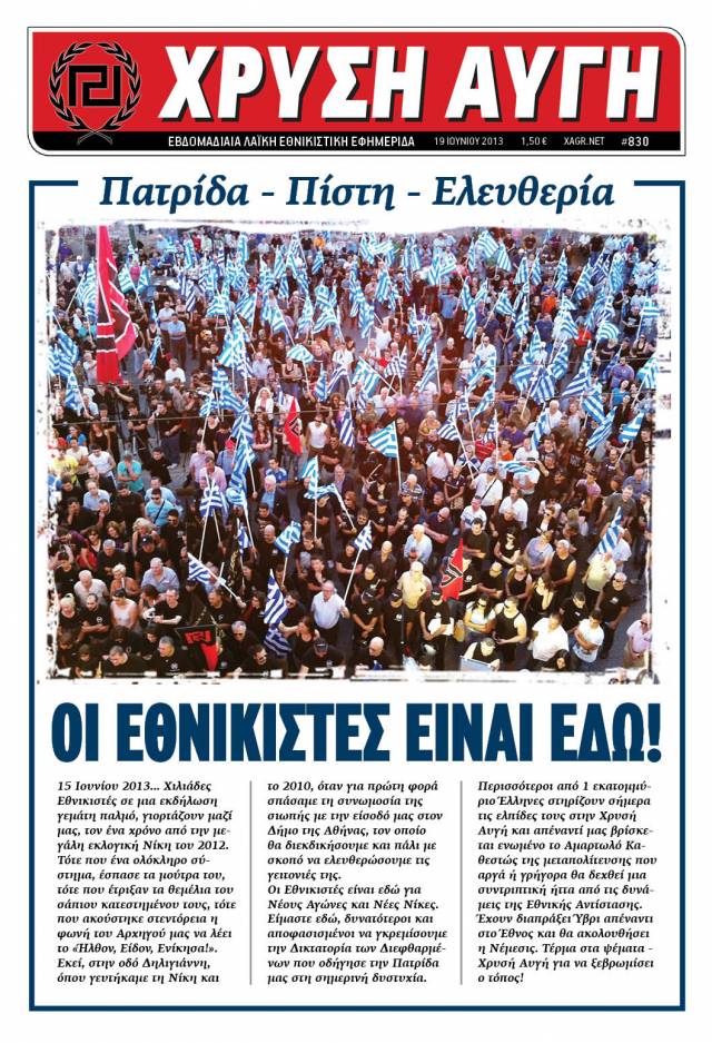 ΧΡΥΣΗ ΑΥΓΗ – ΙΟΥΝΙΟΣ 2013: «ΕΝΑΝΤΙΟΝ ΟΛΩΝ»