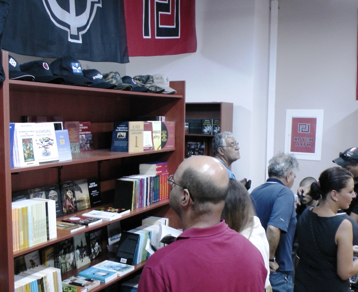 Παρά τα μέτρα αποκλεισμού του κέντρου των Αθηνών, προς χάριν του γερμανού επιτηρητή των διεθνών τοκογλύφων, Βόλφγκανγκ Σόιμπλε, μεγάλο πλήθος Συναγωνιστών και Φίλων της Χρυσής Αυγής βρέθηκε από νωρίς στα εγκαίνια του νέου Εθνικιστικού Βιβλιοπωλείου της Χρυσής Αυγής στην Λεωφόρο Μεσογείων 131. Η τελετή ξεκίνησε με τον παραδοσιακό αγιασμό του νέου χώρου του βιβλιοπωλείου.