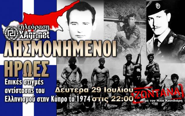Η διαδικτυακή εκπομπή της Χρυσής Αυγής αυτή την Δευτέρα παρουσιάζει ένα ιστορικό αφιέρωμα στην ηρωική αντίσταση του Ελληνισμού στην Κύπρο το 1974. Άγνωστες στιγμές επικής αντίστασης, λίγων γενναίων ανδρών απέναντι στις ορδές των τούρκων.