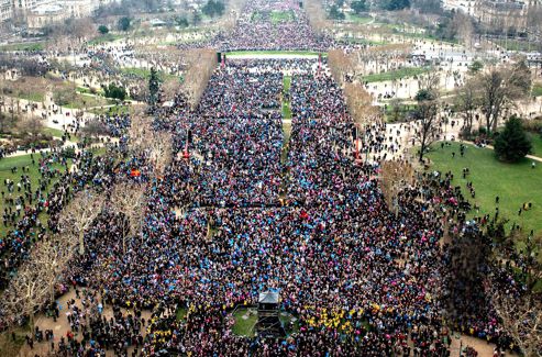 Half a million people of all ages, including many families with children, took to the streets of Paris once more on Sunday to protest the French government’s “anti-family” policies and to express their anger over legalization by stealth of surrogate motherhood. Incredibly, the “Manif pour tous” (demonstration for all) continues to attract gigantic crowds who will not be deterred either by past failure or by governmental soothsaying. For the seventh time running, despite the legalization of same-sex “marriage,” which brought hundreds of thousands into the French capital last year in protest, what seemed impossible two years ago came true once again: families are rising up to say “no.”