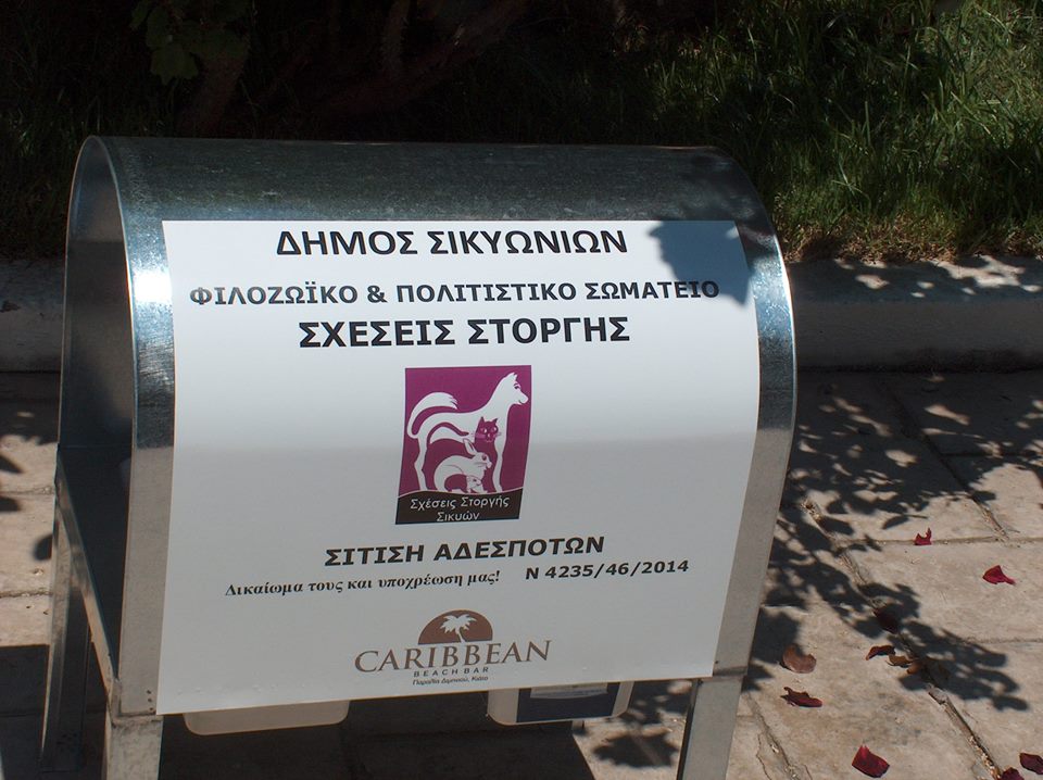 Οι πρώτες ταΐστρες τοποθετήθηκαν έξω από την επιχείρηση Caribbean που βρίσκεται στην παραλία Διμηνιού και σύντομα θα εγκατασταθούν κι άλλες σε διάφορα σημεία του Δήμου Σικυωνίων.
