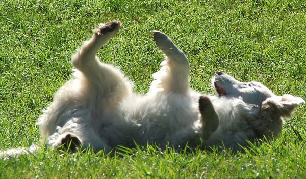 Οταν ο σκύλος ξαπλώνει ανάσκελα είναι σημάδι υποταγής και με τον τρόπο αυτό δείχνει ειρηνική διάθεση.