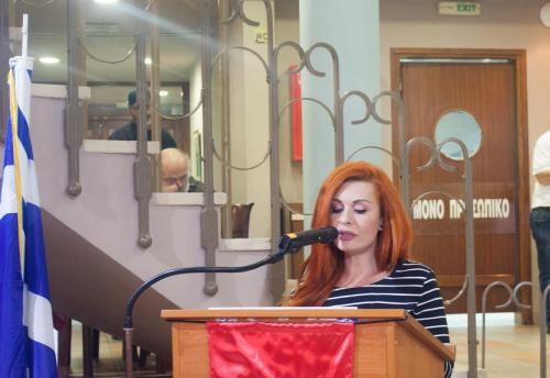 Κιοσσέ Πηνελόπη, ανέγνωσε χαιρετισμό του βουλευτή Α’ Θεσσαλονίκης Α. Γρέγος (λόγω απαγόρευσης)