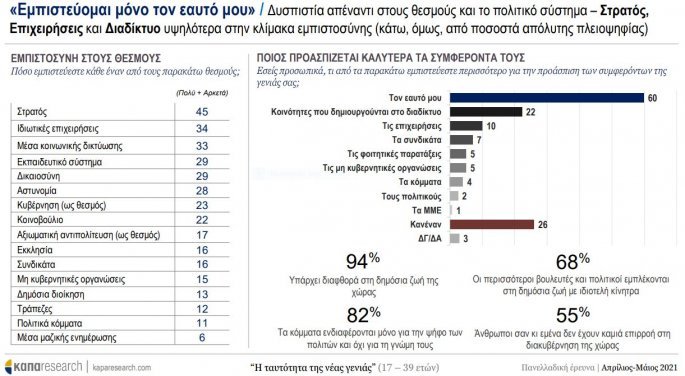 Μία ακόμη δημοσκόπηση (Κάπα Research, “Η Ταυτότητα της Νέας Γενιάς”, 16 Μαΐου 2021) δείχνει καθαρά ότι οι Νέοι της Ελλάδος δεν βλέπουν με αισιοδοξία ούτε τον καιρό της παγκοσμιοποίησης, ούτε το μέλλον.