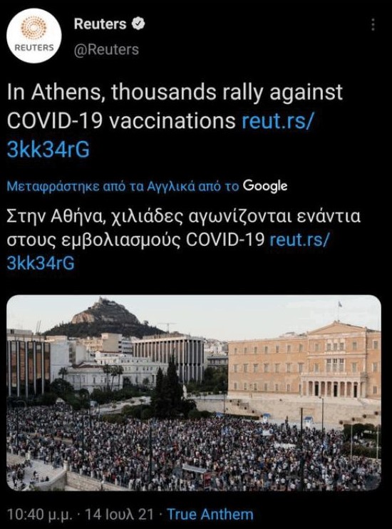 Το Reuters πάντως γράφει για «χιλιάδες». Τι λέτε να συμβαίνει; Μήπως οι ημέτεροι (αλήτες-ρουφιάνοι) δημοσιογράφοι είναι… ανοιχτομάτηδες, ενώ οι… κουτόφραγκοι δεν ξέρουν να μετράνε; Ή μήπως πρέπει η χούντα Μητσοτάκη να στήσει επειγόντως μια «λίστα Πέτσα» και για τα ΜΜΕ του… εξωτερικού, για να μην εκτίθεται;