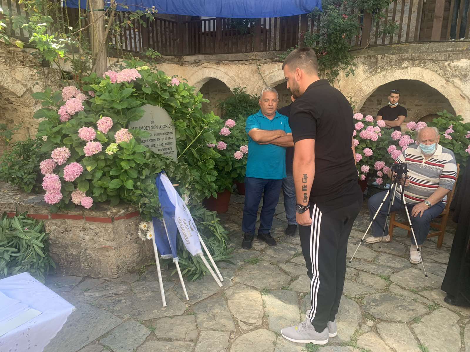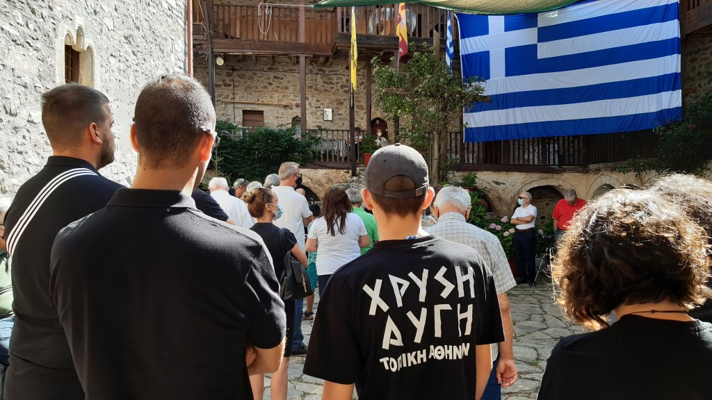 Μετά το πέρας της λειτουργίας και των ομιλιών, ο Συναγωνιστής και Περιφερειακός Σύμβουλος Πελοποννήσου Δημήτρης Τζεμπέτζης προχώρησε σε κατάθεση στεφάνου στην Μνήμη των Νεκρών εκ μέρους της παράταξης της Ελληνικής Αυγής για την Πελοπόννησο της οποίας ειναι επικεφαλής.