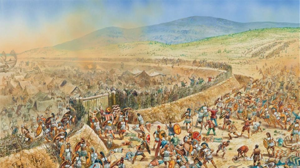Οι Αθηναίοι βάδισαν κατά μήκος της παραλίας και οι Σπαρτιάτες έκαναν μια κυκλική κίνηση από τα γύρω βουνά. Έτσι όταν οι Αθηναίοι μαζί με τους άνδρες της Κορίνθου, της Σικυώνας και της Τροιζήνας συγκρούστηκαν οι Σπαρτιάτες ήταν ακόμα σε απόσταση. Η Ελληνική φάλαγγα έπεσε πάνω στους εχθρούς με τη γνωστή δαιμονιώδη ορμή. Παρ΄ όλα αυτά οι Πέρσες και οι υποτελείς τους άντεξαν πίσω από το τείχος και προς στιγμήν η μάχη ισορρόπησε. Οι νεκροί άρχισαν να πληθαίνουν και από τις δύο πλευρές. Οι δάφνες της δόξας όμως ήταν ένα ισχυρότατο κίνητρο για τους Αθηναίους που τις επιθυμούσαν πριν φτάσουν οι Λακεδαιμόνιοι και εμπλακούν στη μάχη. Έτσι με μια γενική επίθεση το τείχος κατέρρευσε. Η ασφάλεια του οχυρού ήταν το μόνο ασφαλές σημείο πλέον αλλά η εισβολή Ελληνικών στρατευμάτων από τα νώτα διέλυσε κάθε ελπίδα. Πλέον ήταν στο έλεος των Ελληνικών δοράτων οι ζωές των εχθρών οι οποίοι οπισθοχωρούσαν άτακτα εκτός από τους Πέρσες που κατά μικρές ομάδες προέβαλλαν λυσσαλέα μεν αλλά μάταιη δε, άμυνα.