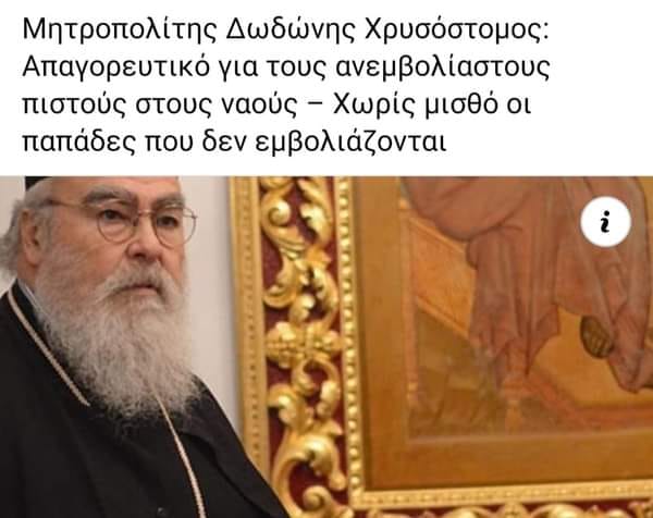 Ο Μητροπολίτης Δωδώνης Χρυσόστομος αποκαλεί τους ανεμβολίαστους ψεκασμένους από σήμερα στα τηλεοπτικά παράθυρα, που αρέσκεται να βγαίνει, και ιδιαίτερα τους Ιερείς που δεν εμβολιάζονται «όργανο του σατανά»!