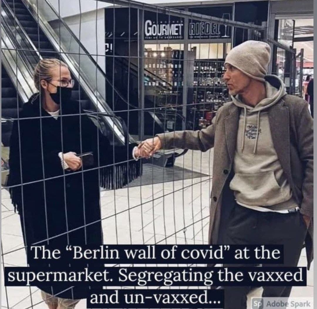 Το οποίο, υψώθηκε στα σούπερ μάρκετ, ως σύμβολο της νέας δυστοπικής «κανονικότητας» του «Θαυμαστού Καινούργιου Κόσμου», για να διαχωρίζει τους εμβολιασμένους από τους ανεμβολίαστους!