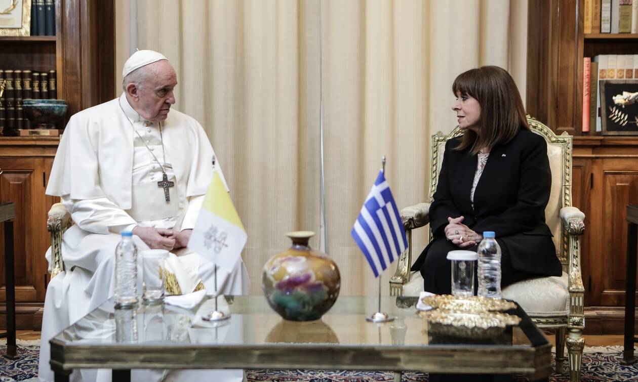 Φυσικά η νεόνυμφη της οπερέττας του Σακελλαρίδη που άρχισε να παίζεται το 1920, δεν είδε τον Πάπα! Τον είδε όμως η κ. ΠΤΔ μετά απο 101 χρόνια καθώς και αρκετοί άλλοι. Τι να γίνη; αυτά τα αξιώματα έχουν και τα τυχερά τους! Αγνοώ αν έχη ξανατοποθετηθή η σημαία στην αναλογη αίθουσα του “προεδρικού” μεγάρου ή ο πάπας θαύμασε τήν κ. ΠΤΔ με τη…γάτα της σύμφωνα με φωτογραφία απο γνωστότατη ιστοσελίδα που είχα δη προ καιρού… Γιατί ομως ο πάπας ήρθε στο ελλαδιστάν; Πλήν της ανταλλαγής διπλωματικά “παγωμένων ” φιλοφρονήσεων, τίποτε άλλο δέν συνδέει το ελλαδιστάν με το βατικανό! Γενικώς ο πάπας θεωρείται ένα πολύ σπουδαίο πρόσωπο παγκοσμίως! Παρά λοιπόν την επισφαλή κατάσταση τής υγείας του, όπως διαβάζουμε στην διεθνή ειδησεογραφία, υπεβλήθη ΚΑΙ στην επιπλέον ταλαιπωρία του ταξιδιού στη Λέσβο ΓΙΑ ΝΑ ΕΠΙΣΚΕΦΘΗ “ΔΟΜΕΣ” ΜΕ ΜΟΥΣΟΥΛΜΑΝΟΥΣ ΛΑΘΡΟΜΕΤΑΝΑΣΤΕΣ, ΑΥΤΟΣ, Ο ΑΡΧΩΝ ΠΑΓΚΟΣΜΙΩΣ ΤΩΝ ΚΑΘΟΛΙΚΩΝ ΧΡΙΣΤΙΑΝΩΝ ΚΑΙ DE FACTO ΟΥΔΕΜΙΑΝ ΣΧΕΣΙΝ ΕΧΩΝ ΜΕ ΤΟΝ ΜΩΑΜΕΘΑΝΙΣΜΟ!!!;;; Αυτούς δηλαδή, που στο ελλαδιστάν της πείνας, (που μόλις αρχίζη), πετάνε στα σκουπίδια το δωρεάν φαγητό που πληρώνεται από τη φορολογία, ΑΚΡΙΒΩΣ ΕΚΕΙΝΩΝ ΠΟΥ ΠΕΙΝΑΝΕ!!! (Μην ειπή κανένας ηλίθιος ότι πληρώνουν οι ….ευρωπαίοι!).