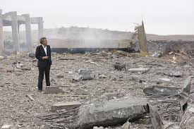 Στην παρακάτω φωτογραφία, βλέπουμε αυτό το ερπετό να φωτογραφίζεται με φανερή ικανοποίηση ανάμεσα στα ερείπια που προκλήθηκαν από τους βομβαρδισμούς των νεοταξιτών στην Τρίπολη.