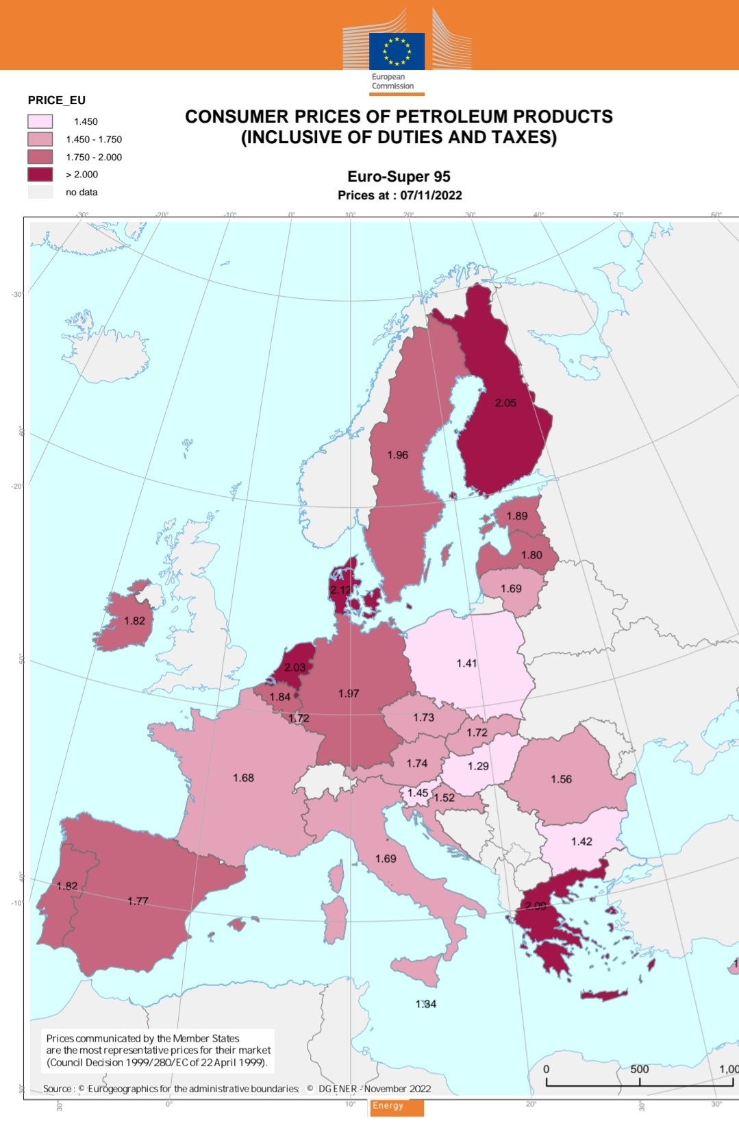 Σύμφωνα, λοιπόν, με τα τελευταία επίσημα στοιχεία της Eurostat, η Ελλάδα του Μητσοτάκη, με τιμή 2,094 ευρώ/λίτρο, έχει την δεύτερη ακριβότερη τιμή στην βενζίνη στην Ευρώπη (μετά την Δανία, που έχει την «πρωτιά» με 2,115 ευρώ/λίτρο) και την τέταρτη ακριβότερη τιμή στο πετρέλαιο κίνησης (μετά από Σουηδία, Φινλανδία και Δανία).