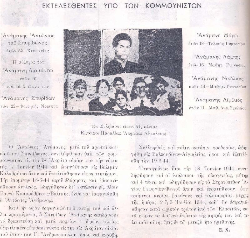 Βάσει του ποινικού δικαίου και της ορθής δικαιοσύνης η τιμωρία επέρχεται για αδίκημα, για προδοσία, για συκοφαντία, για καταπίεση, για απολυταρχισμό, για αυθαιρεσία, για ανυπακοή στην πολιτεία. Και ο τρόπος της τιμωρίας είναι τέτοιος ώστε να υφίσταται ακόμη και τότε σεβασμός των ανθρωπίνων δικαιωμάτων. Αλλοίμονο όμως! Η σκληρή πραγματικότητα και οι άνθρωποι που την έζησαν φωνάζουν στα τρίσβαθα των αιώνων ότι οι σφαγιασθέντες ήταν αγρότες με ροζιασμένα χέρια από το μόχθο της δουλειάς, επιστήμονες γαλουχημένοι με της Ιστορίας και του θρύλου τα παραδομένα, διάκοι απόστολοι της θρησκείας, παρθένες νέες και ανυπεράσπιστες μητέρες με τα παιδιά στην αγκαλιά τους.Αυτοί ήταν τα θύματα των κομμουνιστών. Αυτοί ήταν οι.. «προδότες»! Αυτοί ήταν οι.. «καταπιεστές του λαού»
