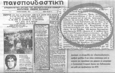 Έγραφε τότε το υπ’ αριθμόν 8 τεύχος της “Πανσπουδαστικής”, οργάνου της φοιτητικής νεολαίας του ΚΚΕ: