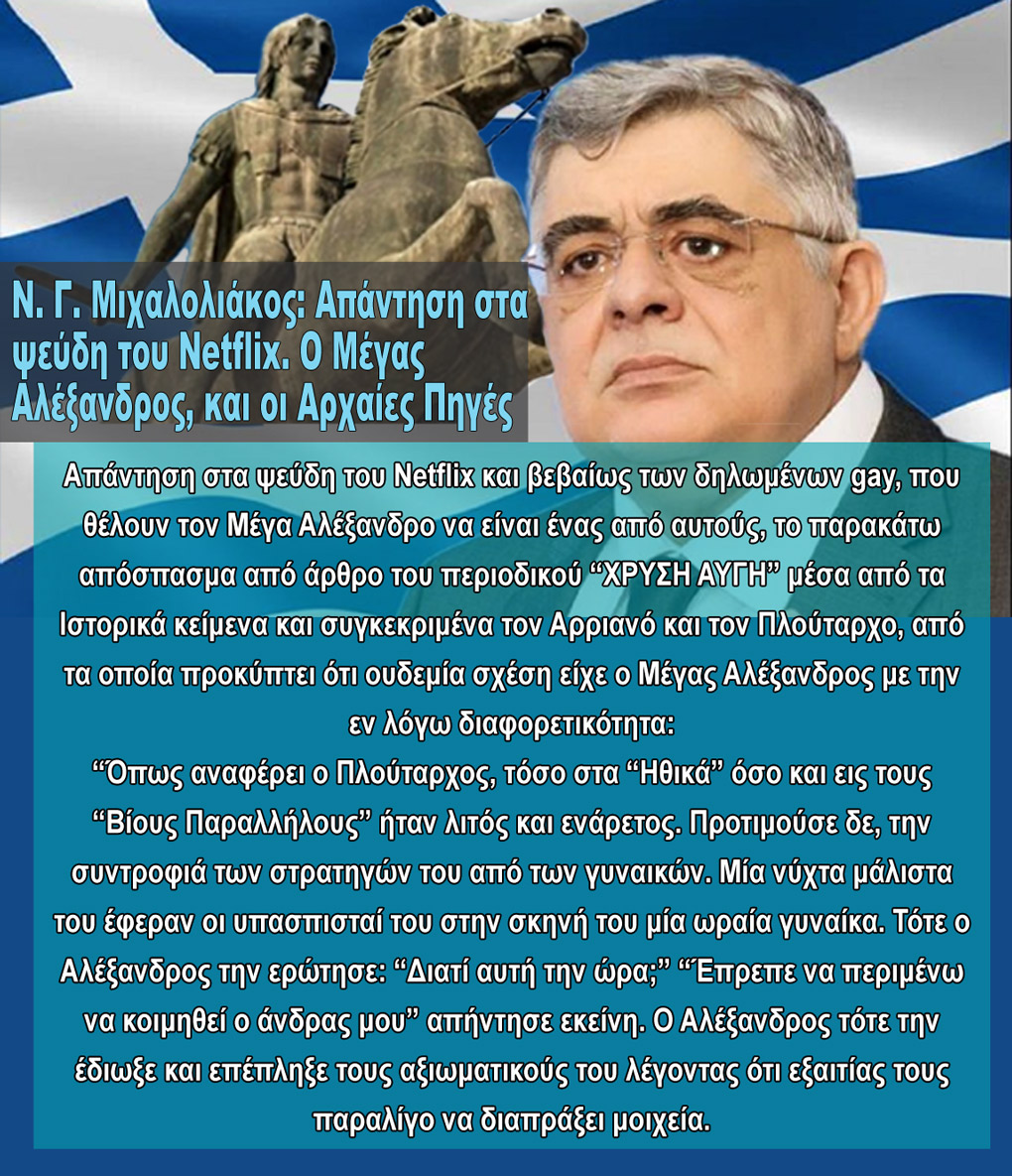 Comments Off on ΑΝΑΔΗΜΟΣΙΕΥΣΗ-Ν. Γ. Μιχαλολιάκος: Ο Μέγας Αλέξανδρος, η ομοφυλοφιλία και οι Αρχαίες Πηγές