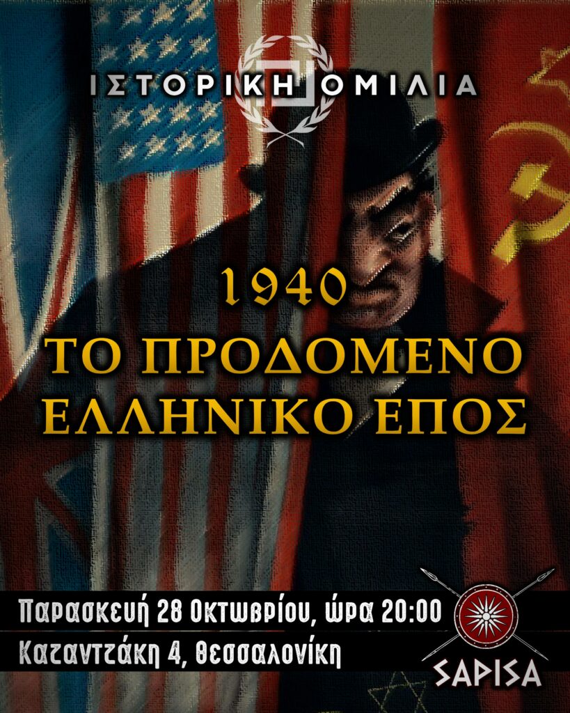 Την Παρασκευή 28 Οκτωβρίου, θα πραγματοποιηθεί στην νέα αίθουσα εκδηλώσεων του Εθνικιστικού πολυχώρου ΣΑΡΙΣΑ ανοιχτή ομιλία ιστορικού περιεχομένου με αφορμή την Εθνική επέτειο της ενάρξεως του ελληνοϊταλικού πολέμου. Continue reading