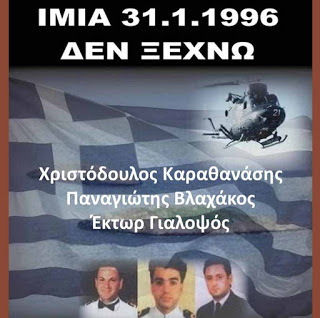 Συμπληρώνονται φέτος 25 χρόνια από την μαύρη επέτειο των Ιμίων όταν οι Εθνομάρτυρες αξιωματικοί τού Πολεμικού μας Ναυτικού Βλαχάκος, Γιαλοψός και Καραθανάσης έπεφταν στο βωμό τού ιερού καθήκοντος υπερασπίζοντας την Πατρίδα μας, την ίδια στιγμή που ψευτορωμαίικο, Τούρκοι και ψευτοσύμμαχοι απεργάζονταν εν αγνοία τού ελληνικού λαού το γκριζάρισμα τού Αιγαίου. Ο Λαϊκός Σύνδεσμος Χρυσή Αυγή υπήρξε το μόνο κόμμα που τίμησε από την πρώτη στιγμή τα θυσιασθέντα αδέρφια μας, λέγοντας την πλήρη αλήθεια στο λαό. Continue reading