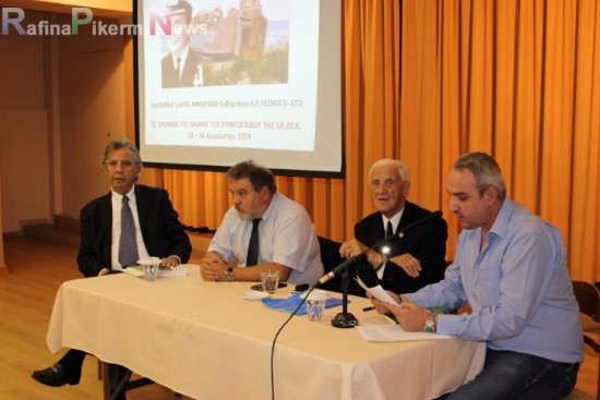 Σήμερα Κυριακή 6 Νοεμβρίου, στην αίθουσα του Ιερου Ναού Αναλήψεως στη Διασταύρωση της Ραφήνας, και υπο την αιγίδα του Συλλόγου «ΕΝΟΤΗΤΑ» Διασταύρωσης Ραφήνας, παρουσιάστηκε το βιβλίο «Το Χρονικό της Μάχης της ΕΛΔΥΚ 14-16/8/1974» του τελευταίου στρατοπεδάρχη της, ταξίαρχου ε.α. Παναγιώτη Σταυρουλόπουλου. Τον συντονισμό της όλης εκδήλωσης είχε ο επιμελητής της έκδοσης Κώστας Δημητριάδης.