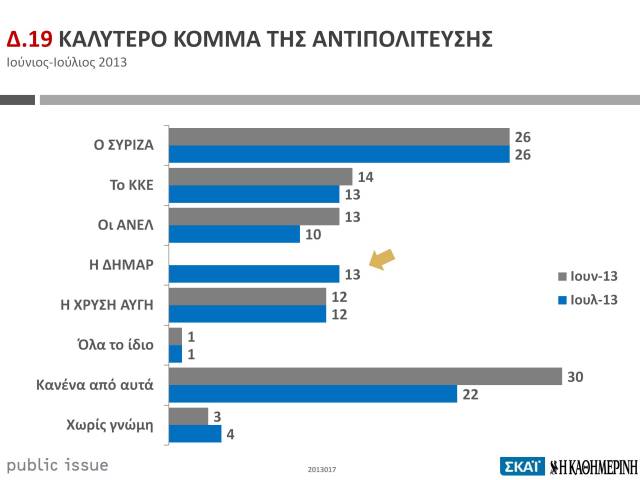 Comments Off on Δημοσκόποι για τα πανηγύρια: καλύτερη αντιπολίτευση η ΔΗΜΑΡ από την Χρυσή Αυγή!!!